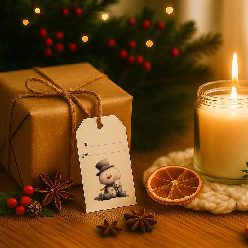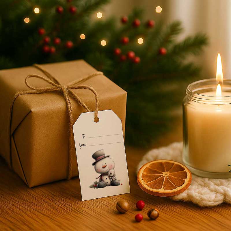 Der niedliche Schneemann sorgt sofort für winterliche Stimmung und verleiht jedem Päckchen eine liebevolle, festliche Note. Das praktische „To/From“-Feld macht das Beschriften besonders einfach und stilvoll.