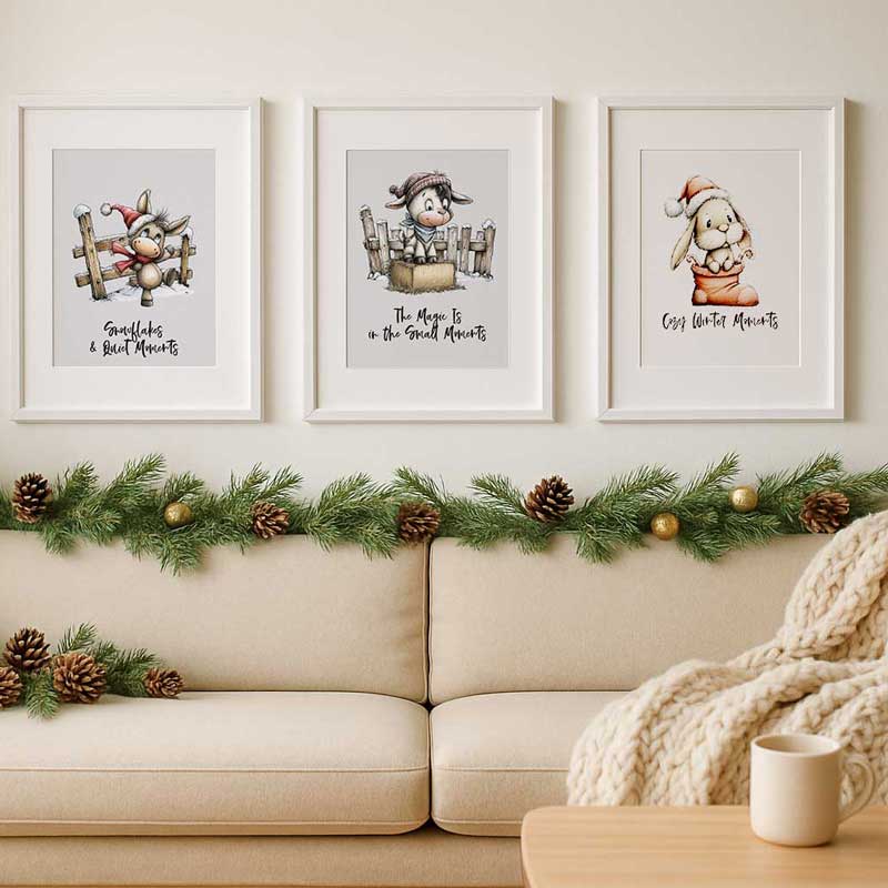 Die harmonischen Farben, die weichen Konturen und die ruhige Gestaltung machen dieses Set zu einer idealen Ergänzung für jede Winterdeko. Ob über dem Sofa, an der Kinderzimmerwand, im Eingangsbereich oder als Teil einer Bilderwand – diese Printables strahlen Gemütlichkeit und Achtsamkeit aus.